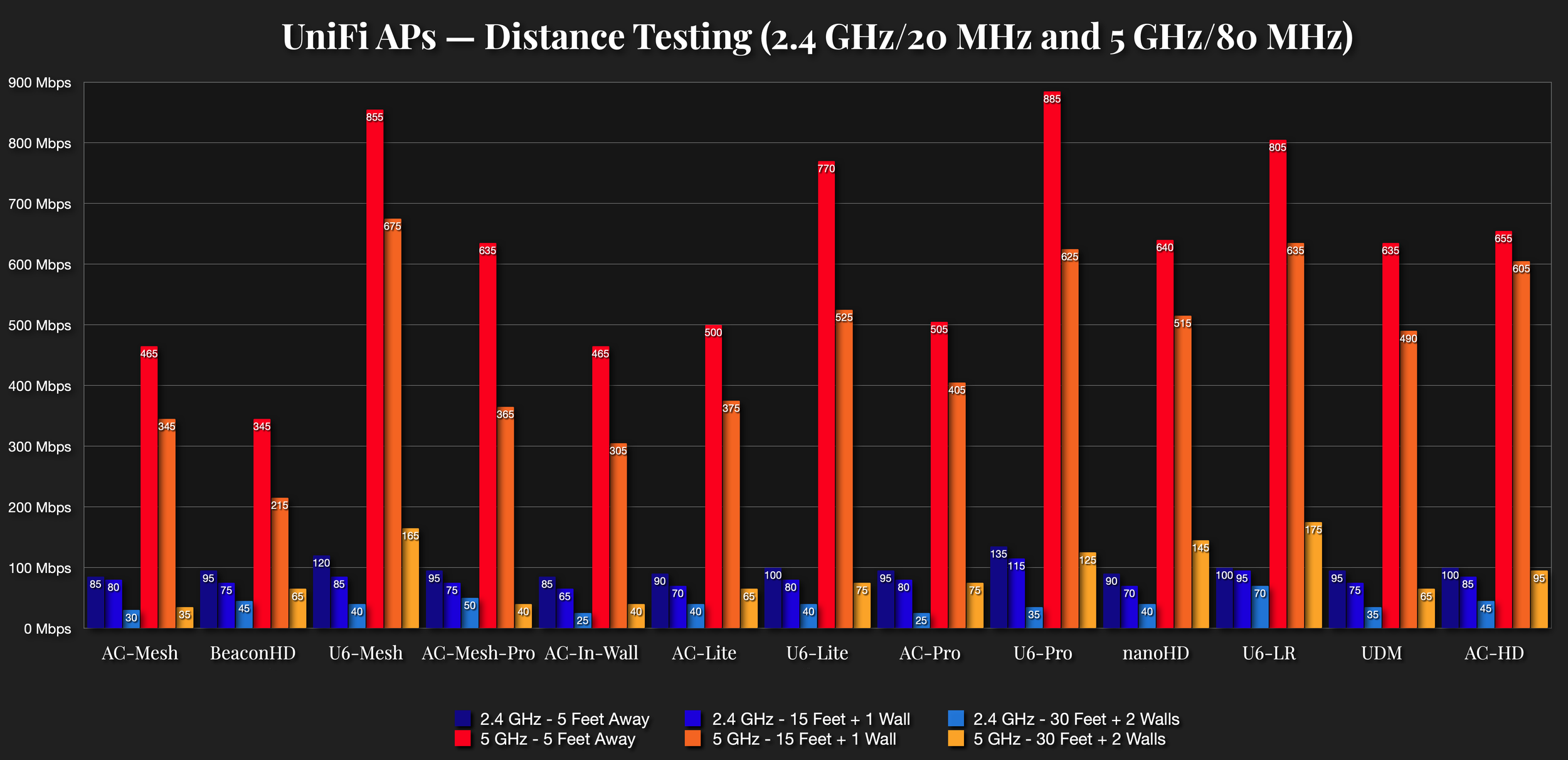 อีกหนึ่งจุดที่แตกต่างกันอย่างเห็นได้ชัดคือระยะการครอบคลุมสัญญาณ UAP-AC-M และ UAP-AC-M-PRO มาพร้อมกับความสามารถในการกระจายสัญญาณระยะไกล ซึ่งทำให้เป็นตัวเลือกที่ยอดเยี่ยมสำหรับพื้นที่ขนาดใหญ่ที่ต้องการการเชื่อมต่อจากหลายจุด ในขณะที่ U6 Mesh และ U6 Mesh Pro มีการกระจายสัญญาณที่เหมาะสำหรับการใช้งานในสภาพแวดล้อมที่มีการใช้งานอุปกรณ์หลายชนิดพร้อมกัน และรองรับความเร็วในการเชื่อมต่อที่สูงขึ้น