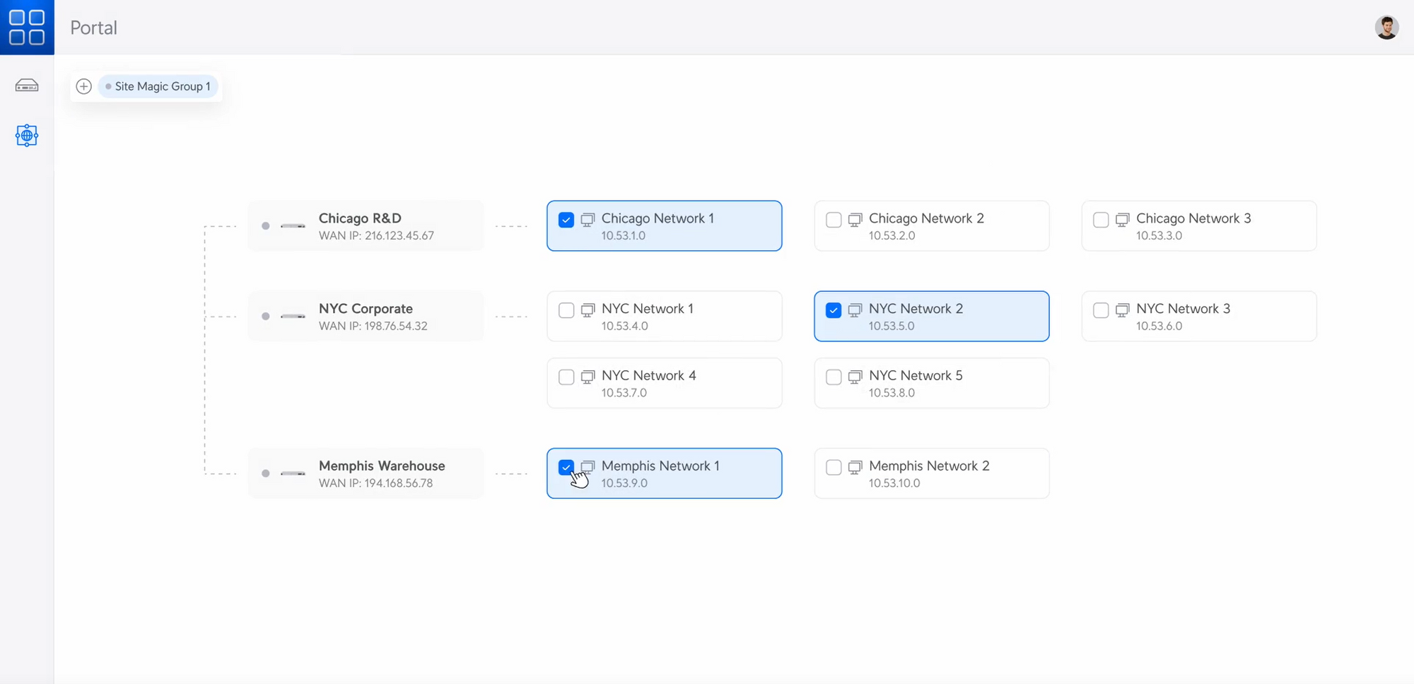 การตั้งค่าเครือข่ายระหว่างหลายสาขาที่เคยเป็นเรื่องยุ่งยากและซับซ้อน จะกลายเป็นเรื่องง่ายด้วย Site Magic ผู้ดูแลระบบสามารถตั้งค่า VPN ได้อย่างรวดเร็วผ่านการจัดการจากคลาวด์ โดยไม่ต้องมีความรู้เชิงเทคนิคสูงหรือการตั้งค่าที่ซับซ้อน