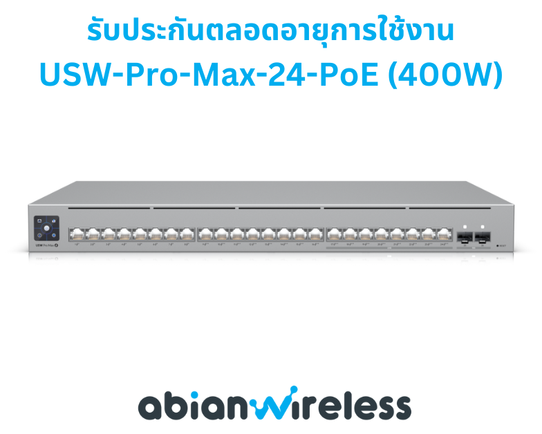 - 24 พอร์ต Gigabit Ethernet รองรับ PoE